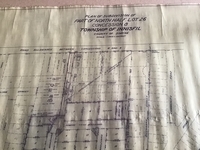 Photograph of the subdivision plan of the north half of lot 26, concession 8, of Innisfil. Included in the plan are:
