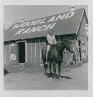 Photo of Shirley Somers on horseback at the Woodland Ranch. Woodland Ranch was owned by Jack and Enid Coupland until