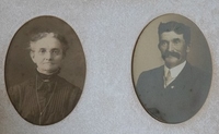 Two oval-shaped black and white portraits of Harriett Alice Greensides (née Moore) and her husband Peter Greensides.