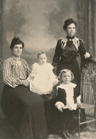 Studio portrait of two women and two children. From left to right are Annie Spindloe, Harvey Spindloe [baby], Elward