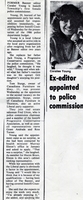 Newspaper clipping titled "Ex-editor appointed to police commission" detailing how Coralee Young replaced her father as