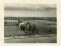 Black and white aerial photograph of lot 19 on Concession 10. No date given. A car is visible driving down the