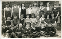 Group photo taken at Cookstown School in an unknown year, likely in the 1930s. Pictured from left to right, standing in