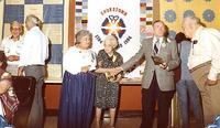 Photo taken during the official opening ceremony of the Cookstown Reunion of 1984 showing Reeve Anne Monkman presenting