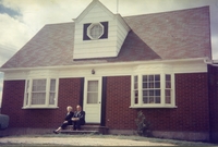Colour photo of Cora and Bill Young sitting in front of the house that Bill built for Cora at 8034 Yonge Street in