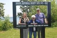 Photo of Mayor Lynn Dollin with Sandra and Bill Kell standing inside a specially designed life-sized photo frame