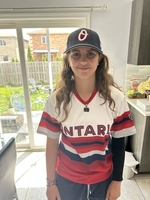 Photo of Ava Silva, age 12, wearing her Team Ontario jersey and baseball cap. Ava was selected to play for Team Ontario