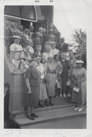 Photo of a large group of people posing on the steps of St. Jude's Anglican Church in Thornton. Standing in the third