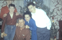 Colour photo of the Greeley Family on Christmas Day in December, sometime in the mid to late 1960s. Pictured from left