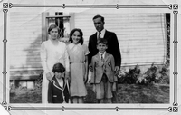 Photo of the William S. Young Family circa 1930 standing in front of a house. Pictured from left to right, back row: