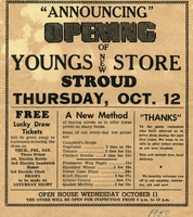 An advertisement announcing the opening of Young's Store in Stroud, taking place on 12 October 1950. The announcement