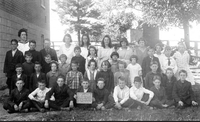 Class photo from St. Paul's School, 1946. Pictured from left to right, back row: Velma Hubbert (teacher), Bruce McArthur, IHS1089