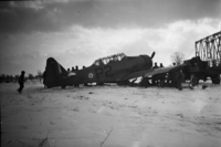 Black and white photo taken in the late 1930s of Keith Campbell's Harvard plane, which had landed in Stroud during a
