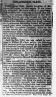 Newspaper clipping of Obituary, Philadelphia Clark (1844-1878), she was born in Innisfil May 9, 1844, second daughter of, IHS1631