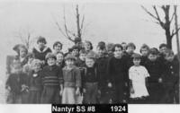 Class photo from Nantyr School in 1924 with Miss Fraser as the Teacher. Pictured from left to right, front row: Lizzie, IHS143