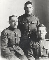 Photograph of three soldiers from the Innisfil area in uniform in the first World War. Pictured includes from left to, IHS1107