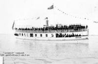 Postcard of "Geneva," an excursion boat operating on Lake Couchiching and Lake Simcoe. Both the upper and lower decks, IHS476