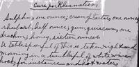 Cure for Rheumatism - Sulphur one ounce, cream of tartar one once, rhubarb half an ounce, gum guiacum one dram, honey 16, IHS3124