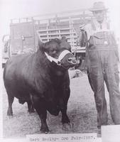 Herb Beelby with bull, at Oro Fair from pg. 114 of Stroud Tweedsmuir History, Vol II., IHS3382-120B