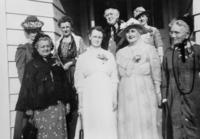 Photo of a group of ladies in Cookstown posing in front of the home of Dr. and Mrs. J.H. Miller on 34 Queen Street. The,