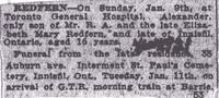 Obituary notice of Alexander Redfern. Death occurred Jan.9, 1921