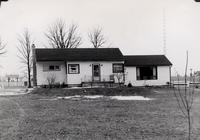 Photo of the exterior of Mr. and Mrs. Wilmot (Bill) Ferrier's home in Cookstown. It is a large two-storey house with a,