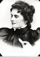 Mrs. Irving Nelson at age 25 (1871-1967). Note the "Ladies Finger" cake in her hand. This is a photograph of a, IHS2273