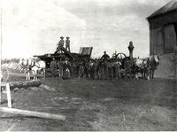 An early, horse-drawn, threshing outfit before steam thrasher were self-powered. It may be on Lot 19, Conc. 6 as, IHS291