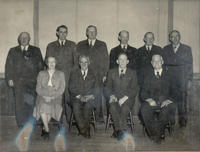 Group photo of the Innisfil Council in business attire during the Centennial year, 1950. Pictured from left to right -,