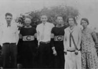 Back row (l to r): Len McCullough, Garry McCullough, Lloyd Simmons, Garnet Gould, Rick Fotherby. Martha Fitzsimmins, IHS4217