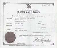 Scan of a birth certificate for Eleanor Elizabeth Zeta Barclay, who was born on 29 November 1892. Her father was John