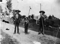 Pictured from left to right are Calvin Boyd, Edgar Thompson, and Bob (Robert) Thompson ready to work. , IHS1152